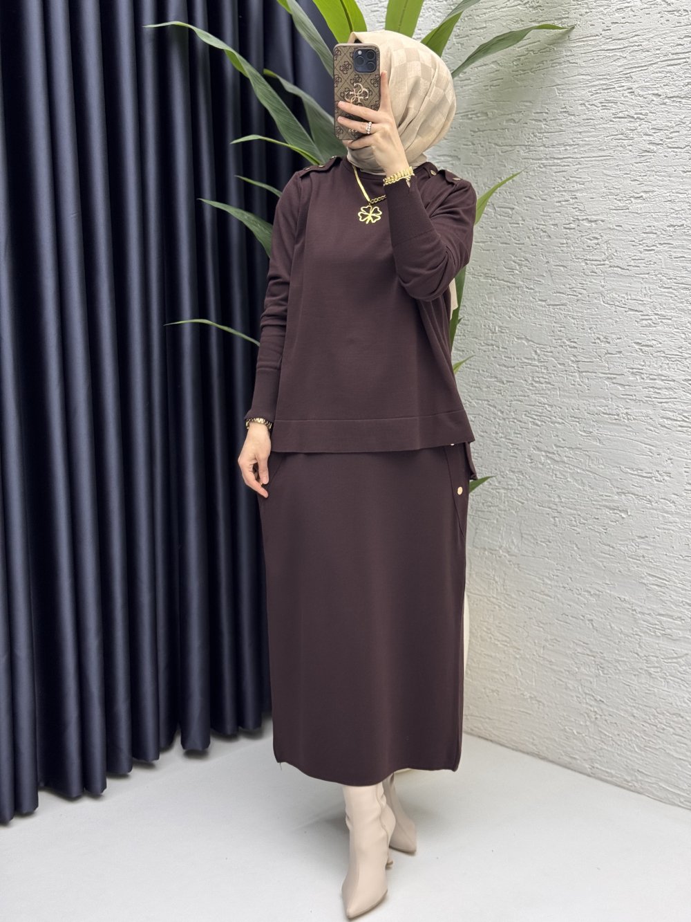 Dilan Etekli Takım Tesettür Giyim Kahve