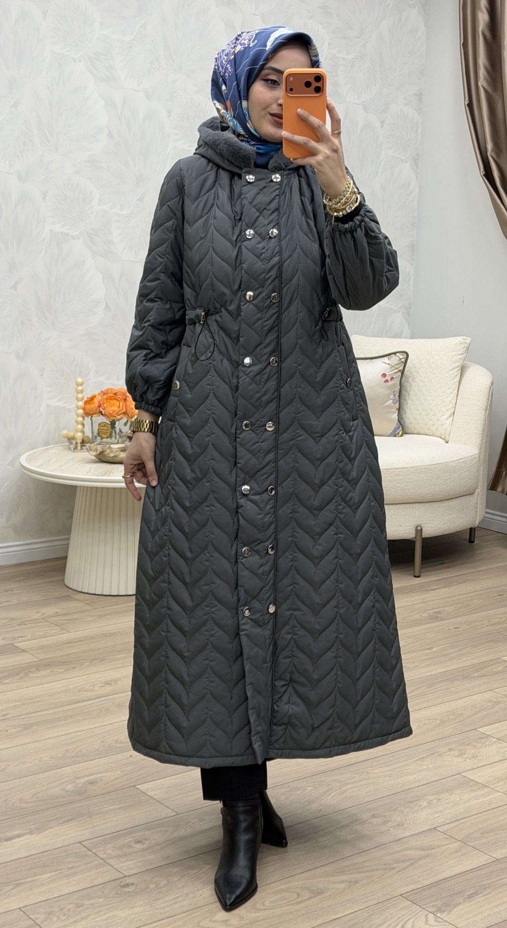 Gözde Kapitone Mont Lacivert