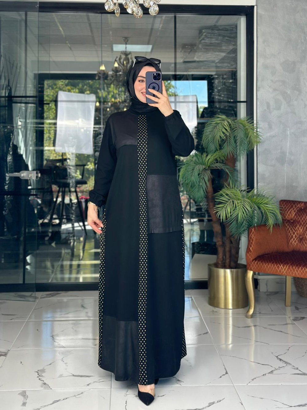 Kumaşı çelik örmedir. Desenli örme kombindir. Deri detayları mevcuttur.