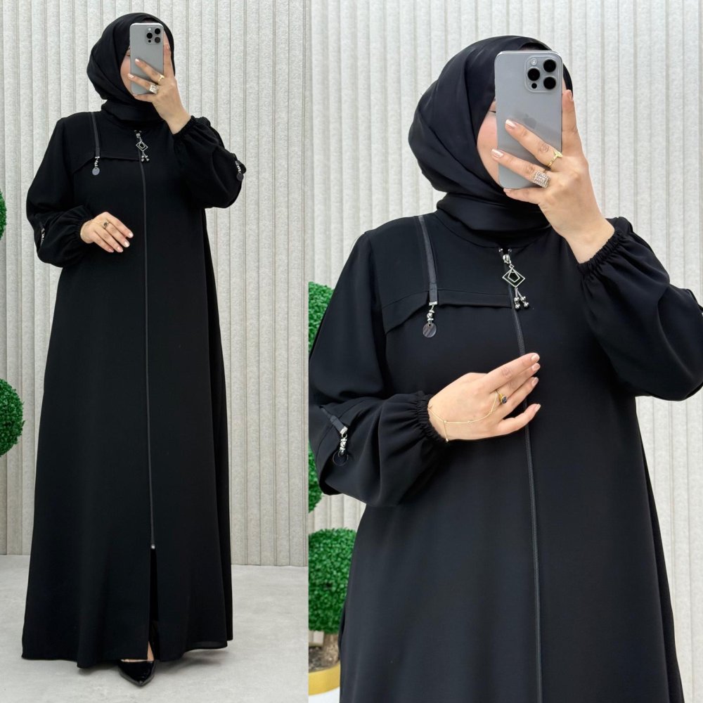 •Şerit detaylı ferace