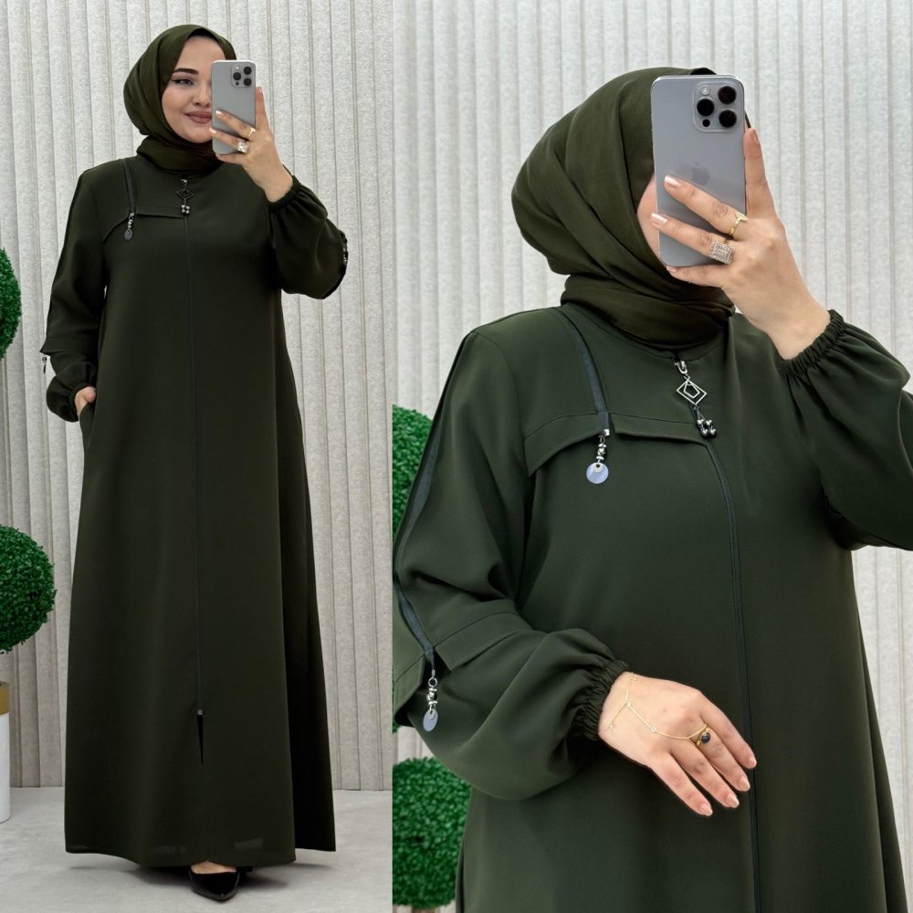 •Şerit detaylı ferace