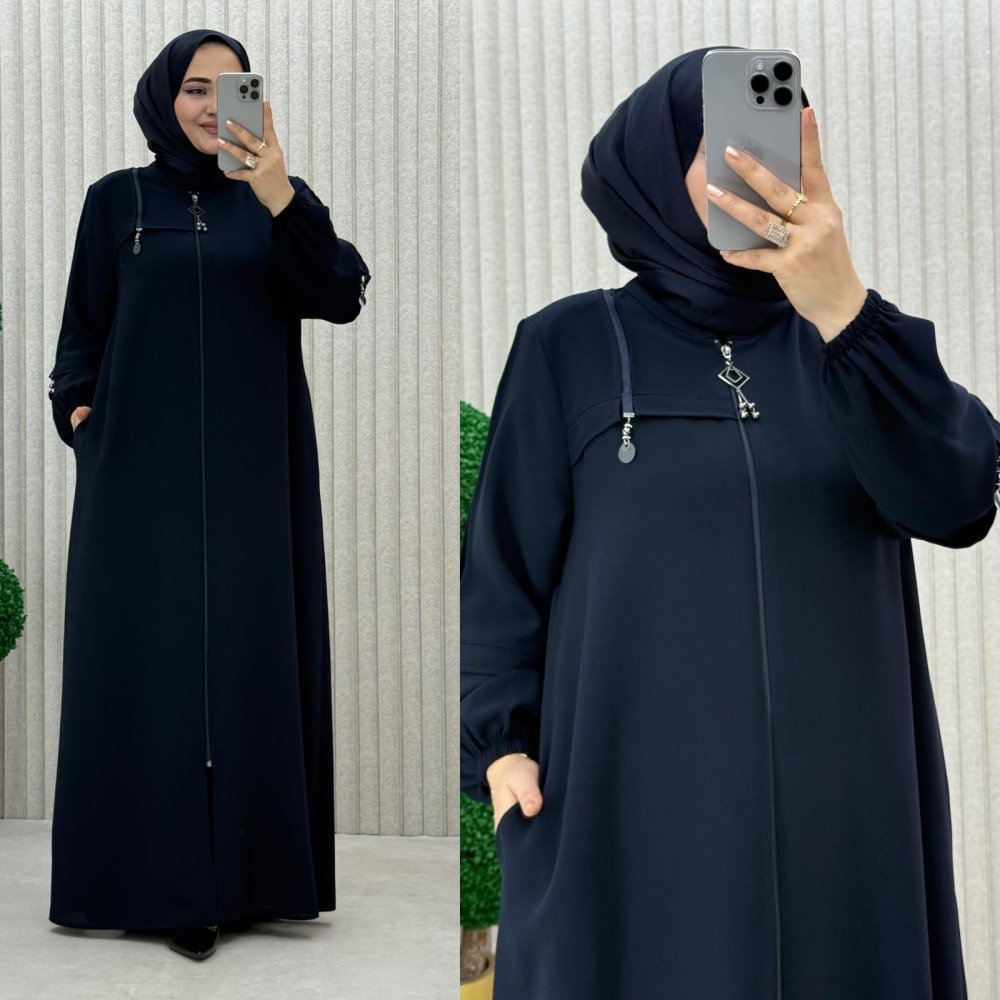 •Şerit detaylı ferace