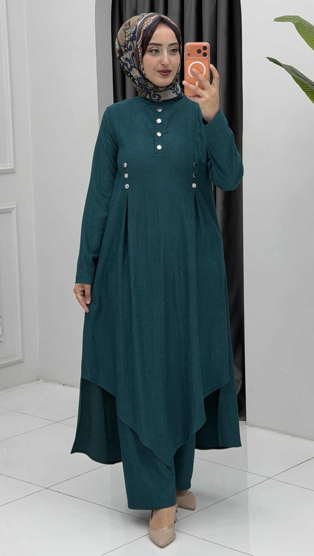 Evin Takım,hem iş hem de günlük hayatınızda rahatlıkla tercih edebileceğiniz çok yönlü bir parçadır. Şıklığı konforla buluşturan bu tasarım, sezonun en gözde modellerinden biri olacak!