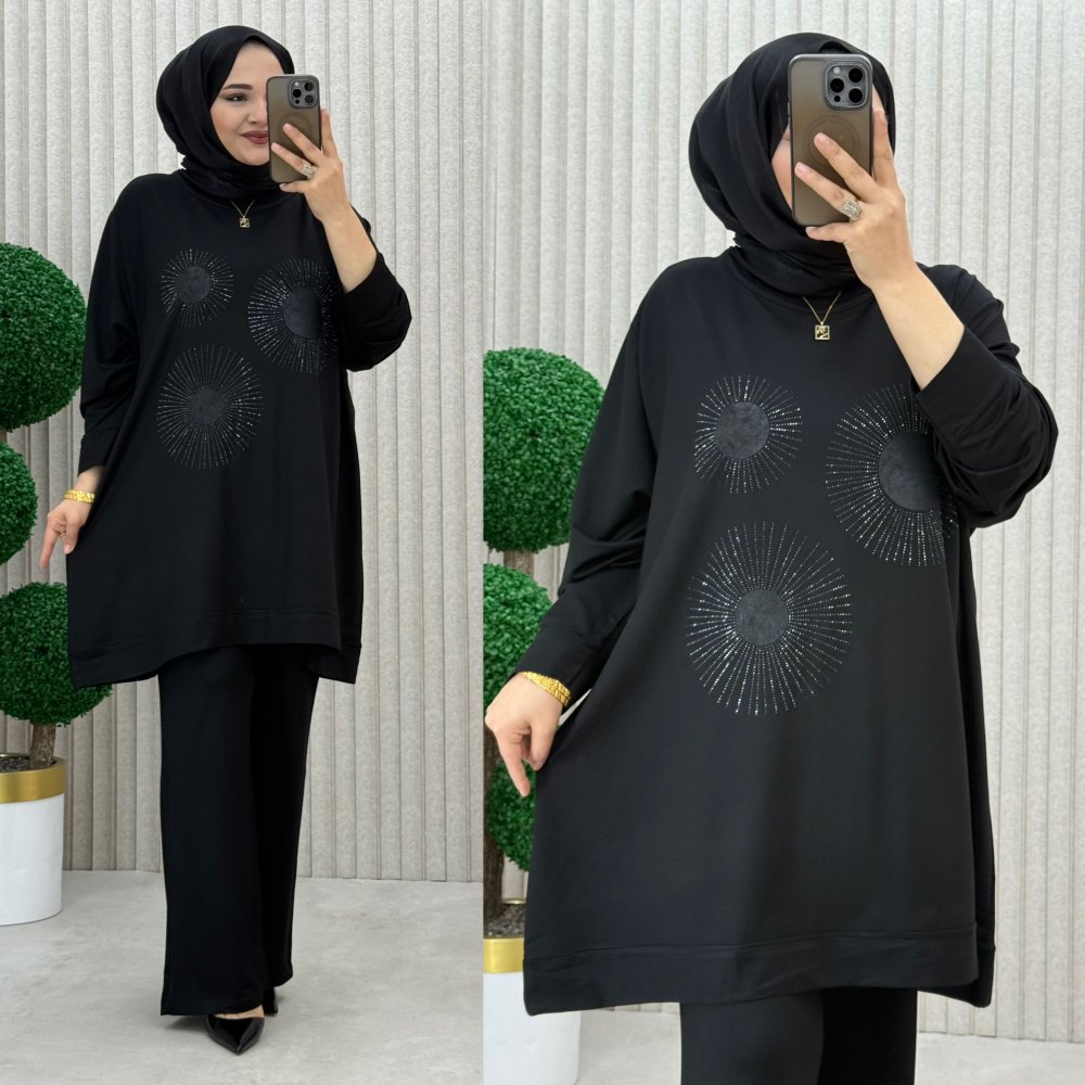 ? 3 beden Göğüs 74 cm Tunik Basen 80 cm Pazu 26 cm Pantolon Bel açık 72 cm