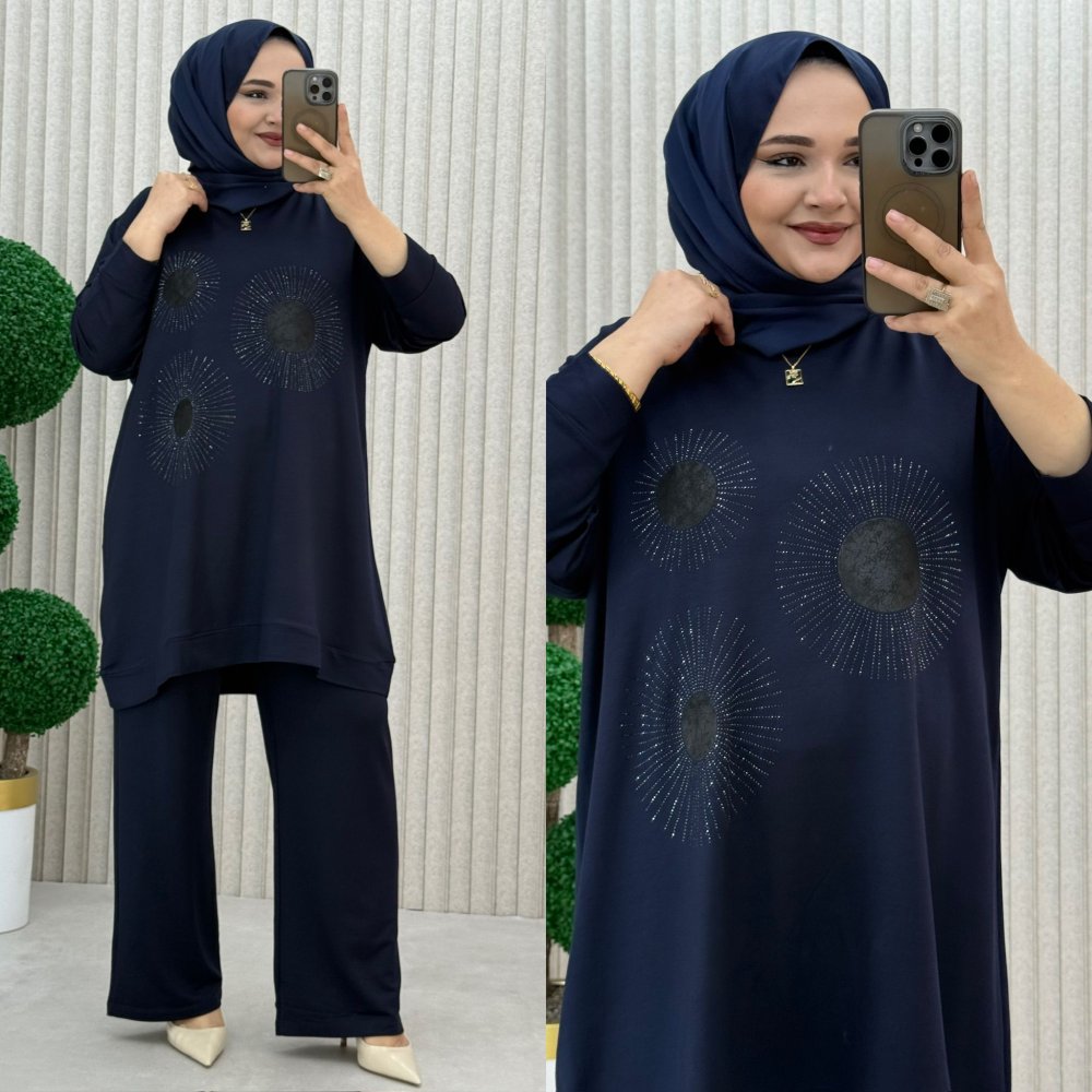 ? 3 beden Göğüs 74 cm Tunik Basen 80 cm Pazu 26 cm Pantolon Bel açık 72 cm