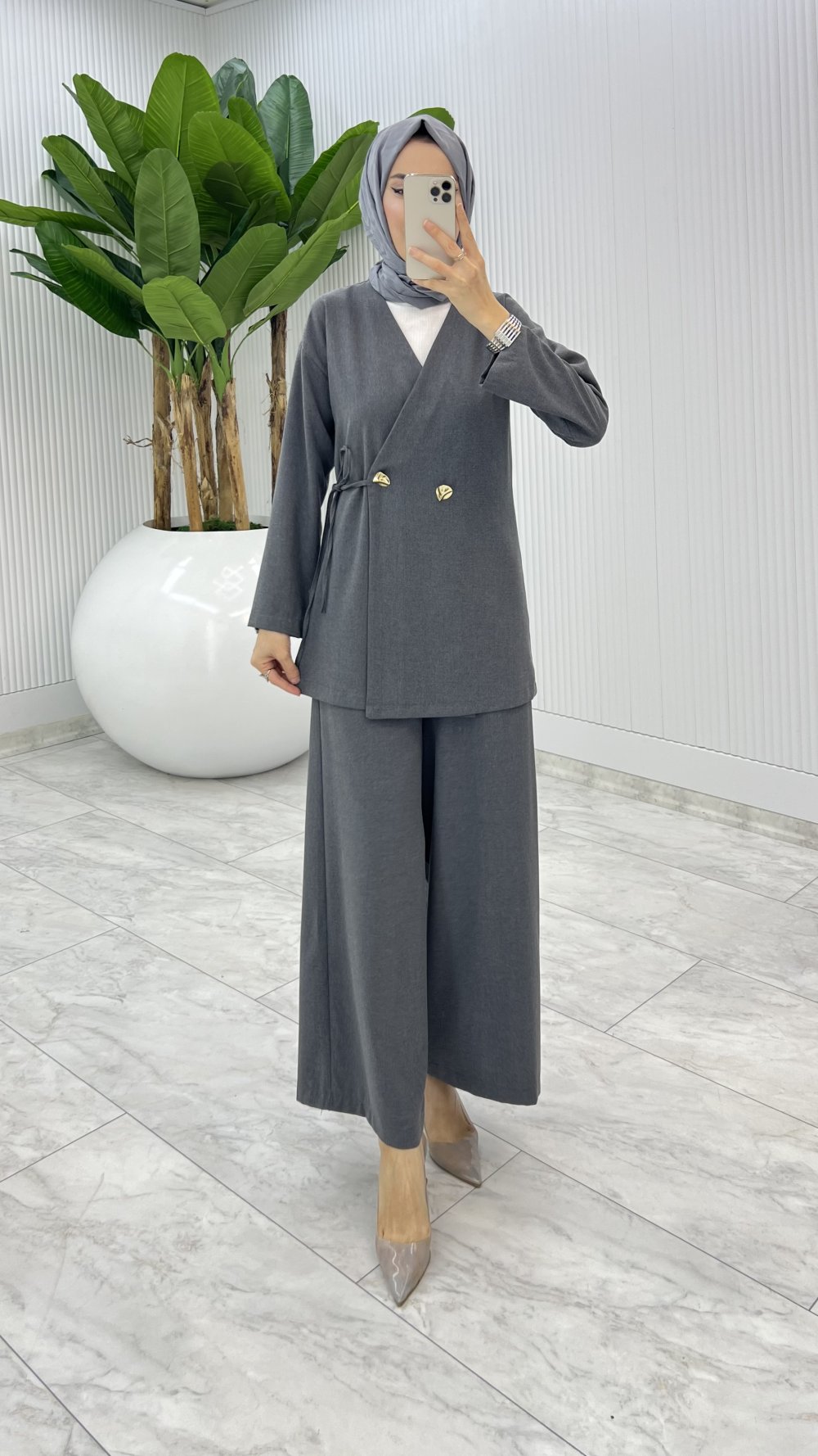 Füme Güler Pantolonlu Takım Tesettür Giyim