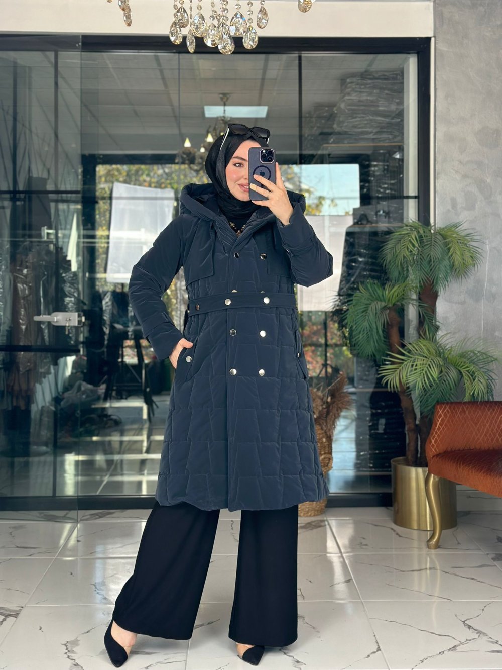 Gözde Kapitone Mont Lacivert