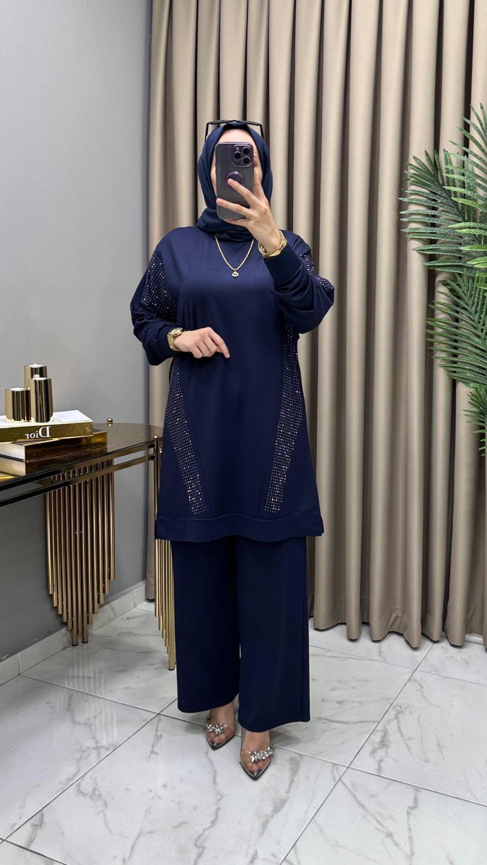 Hanımeli Taşlı Takım Lacivert