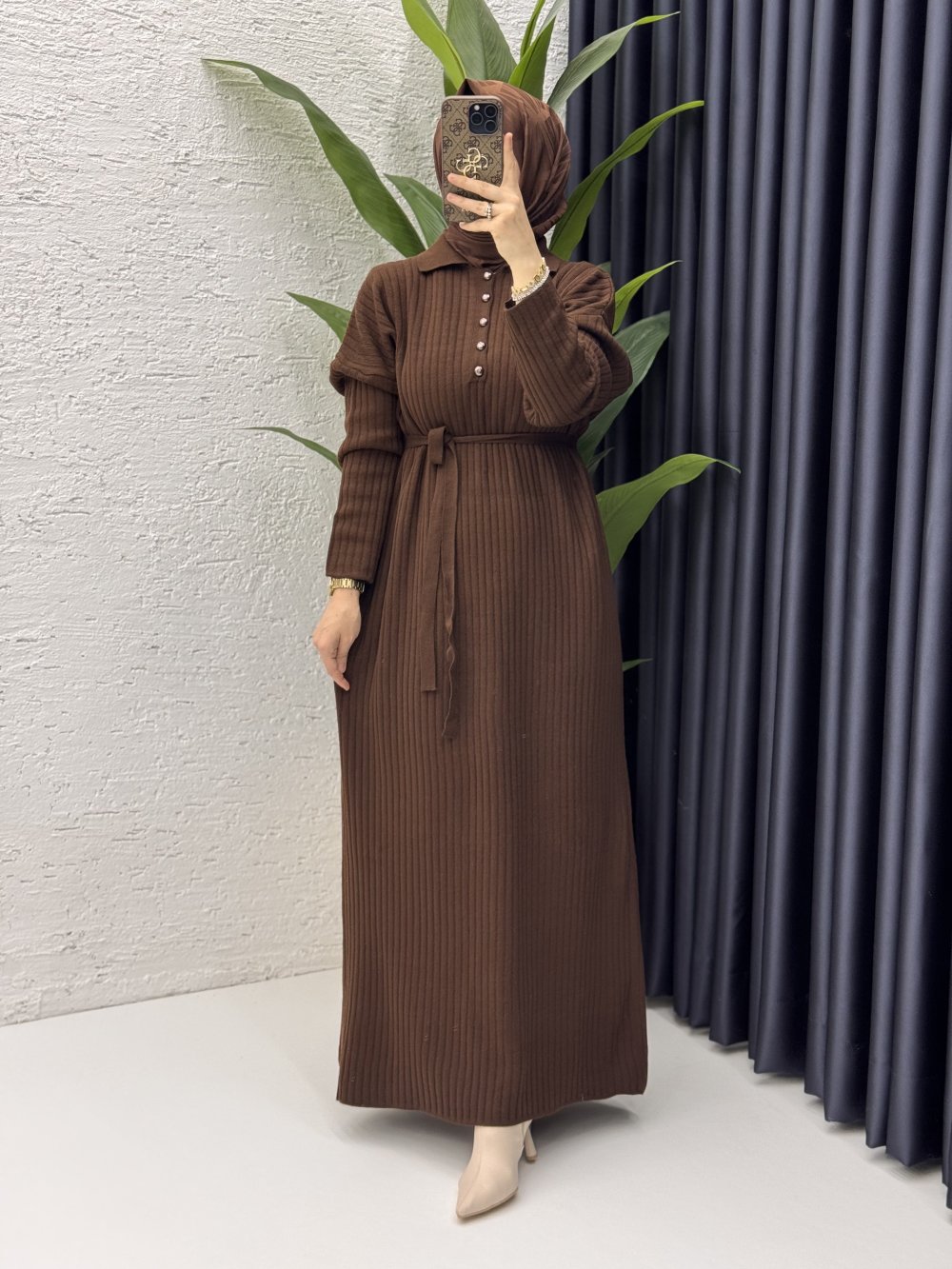 Hazen Elbise Tesettür Giyim Kahverengi