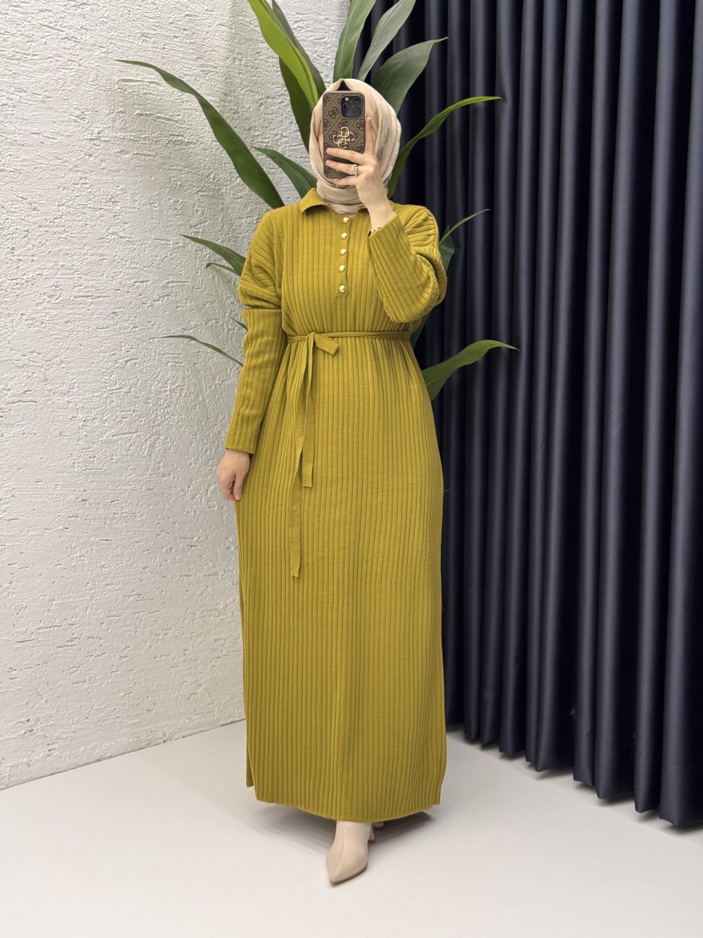 Hazen Elbise Tesettür Giyim Yağ Yeşili