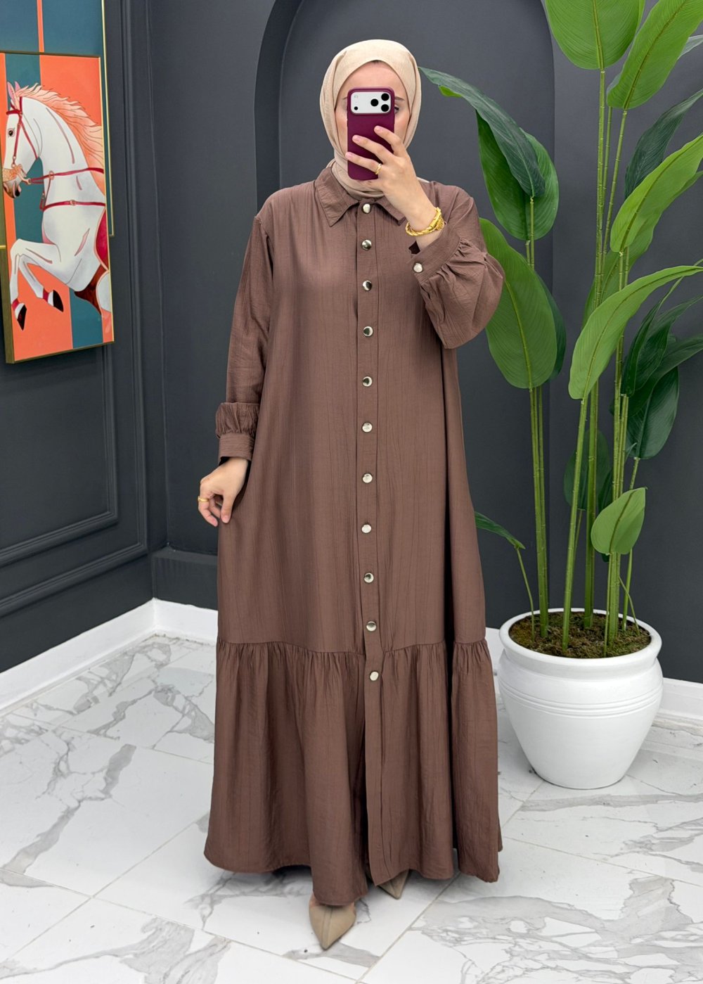 Hülya Uzun Elbise - Kahve