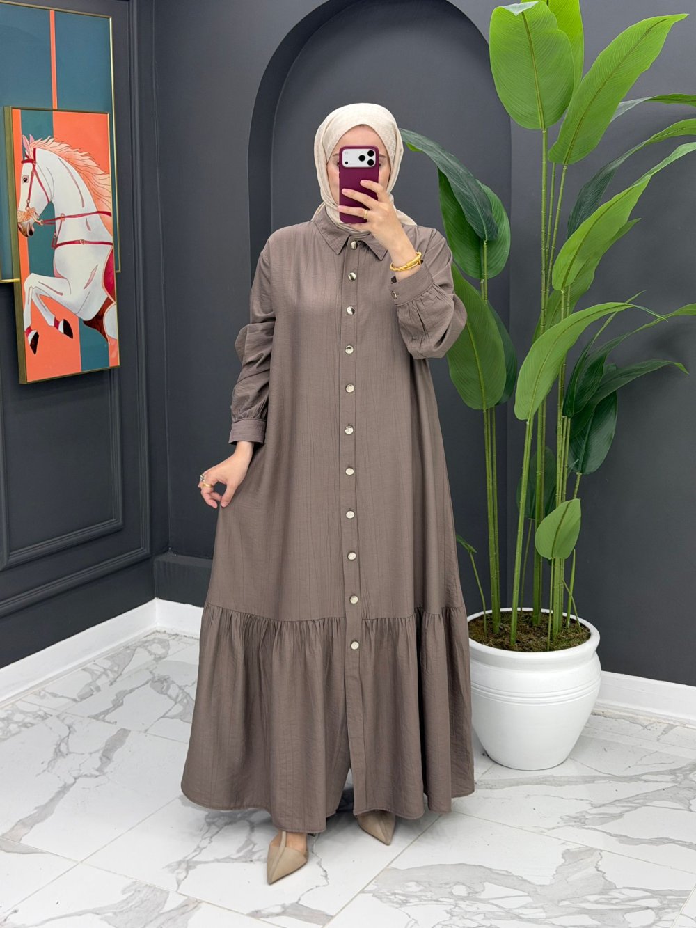 Hülya Uzun Elbise - Vizon