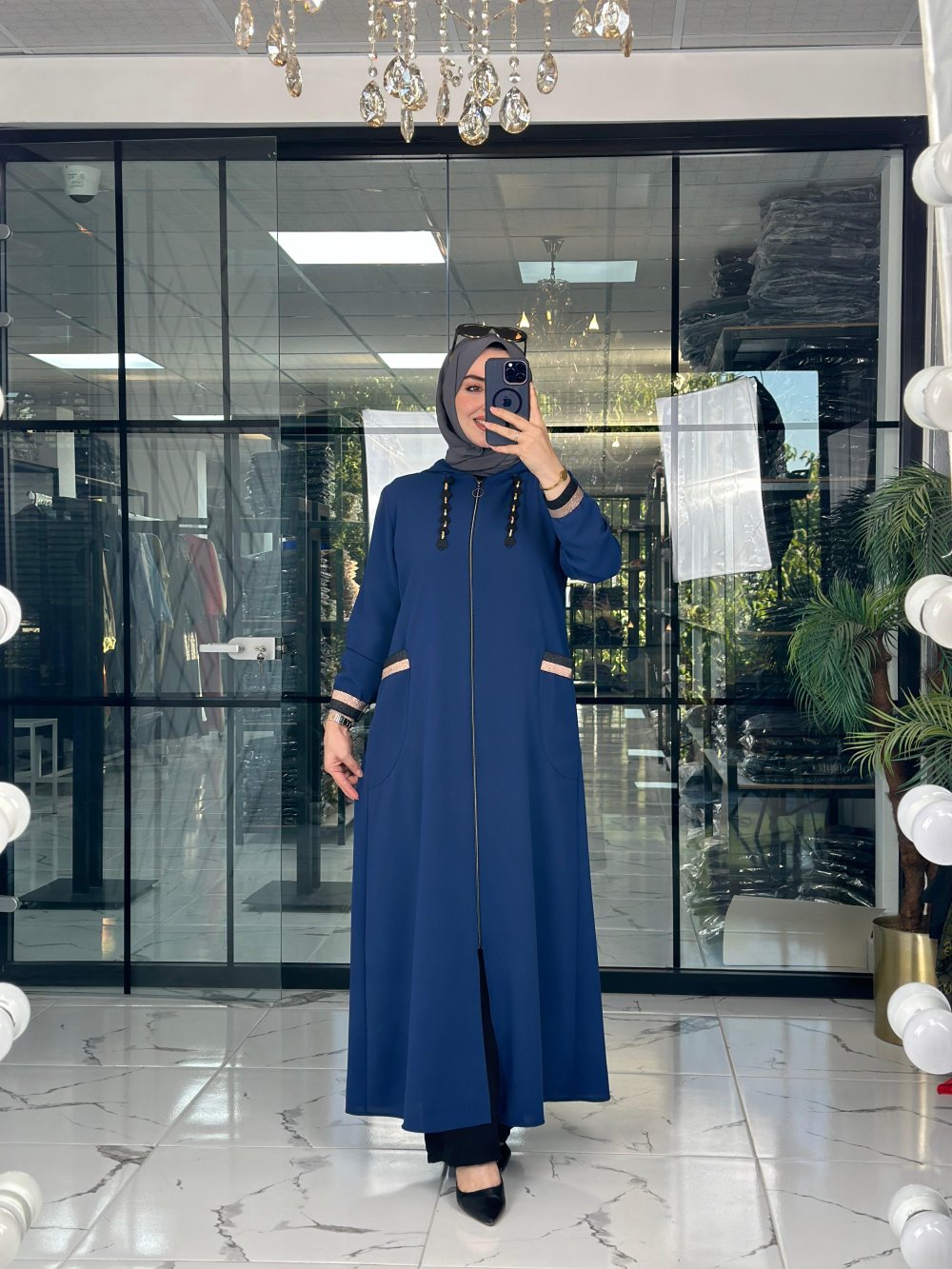 Kumaşı kreptir. Şapkası sabittir. Cepleri mevcuttur.