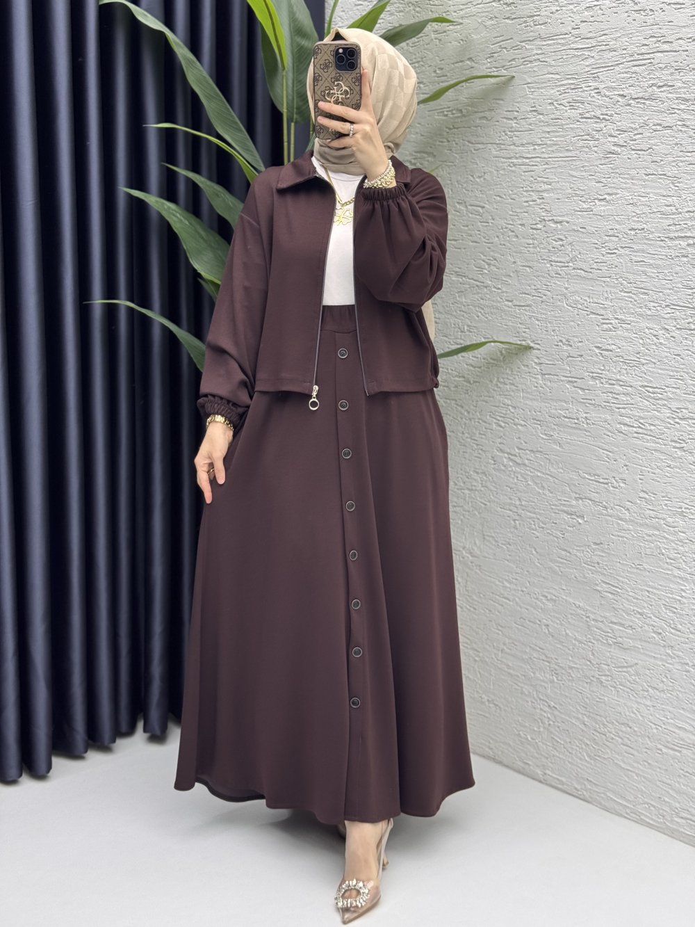 İlve Etekli Takım Tesettür Giyim kızıl kahve