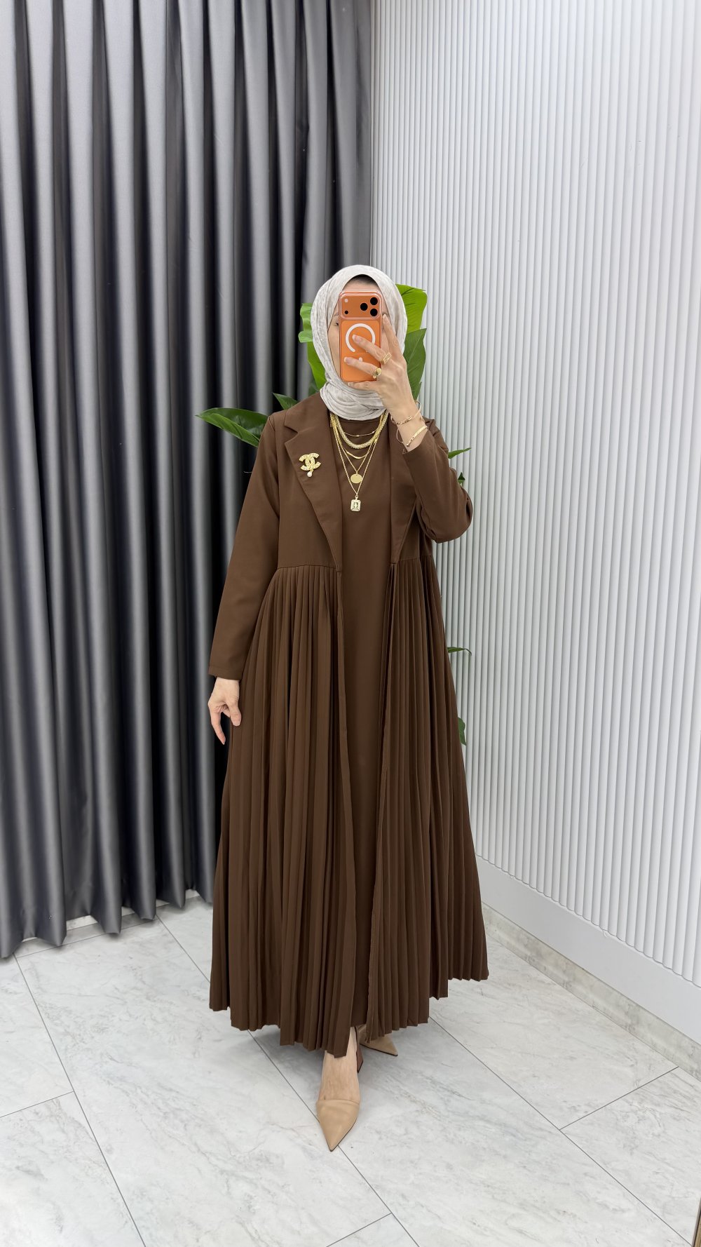Kahve Broşlu Premıum Sibel Tasarım Takım Tesettür Giyim