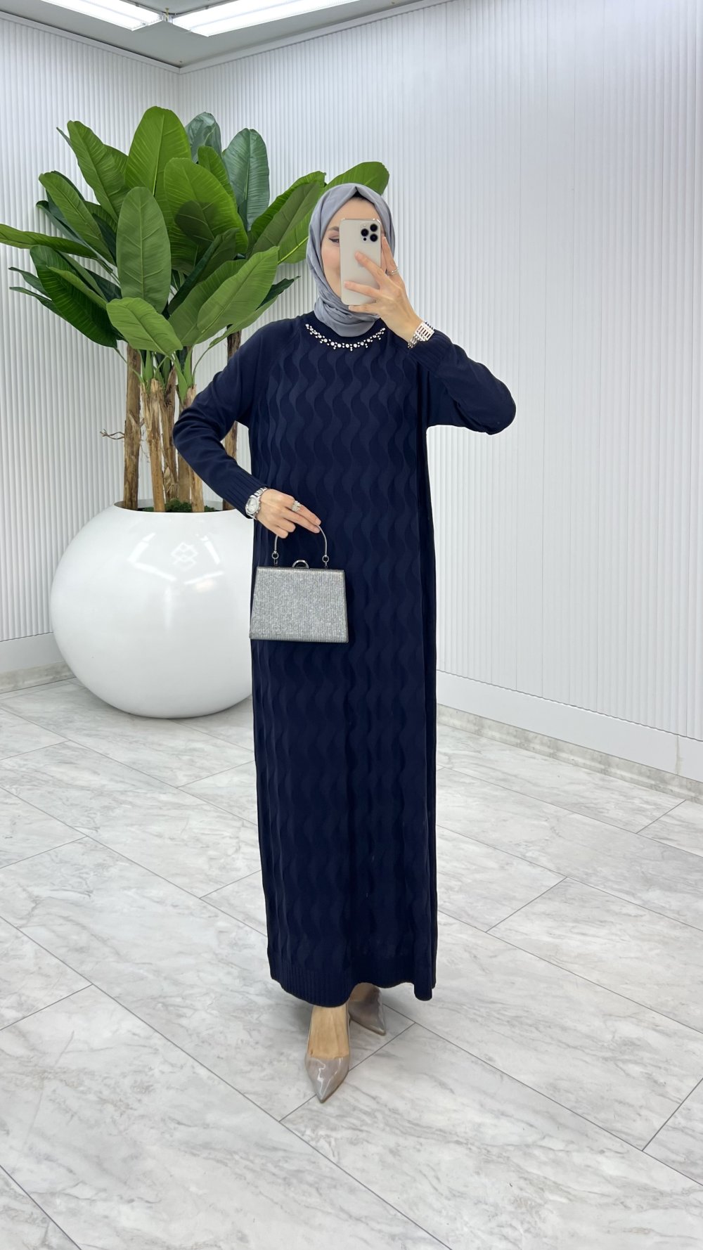 Lacivert İzel Triko Elbise Tesettür Giyim