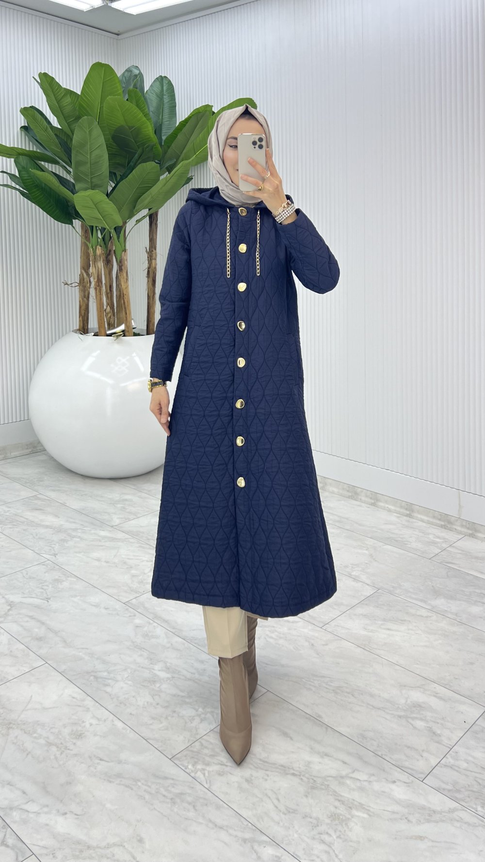 Lacivert Leman Kapitone Mont Tesettür Giyim