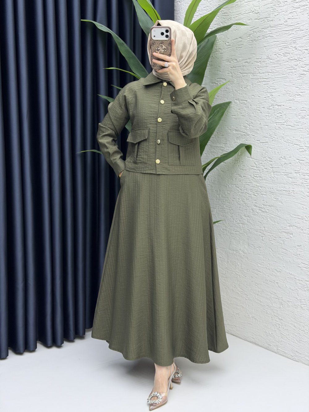 Laya Etekli Takım Tesettür Giyim Haki