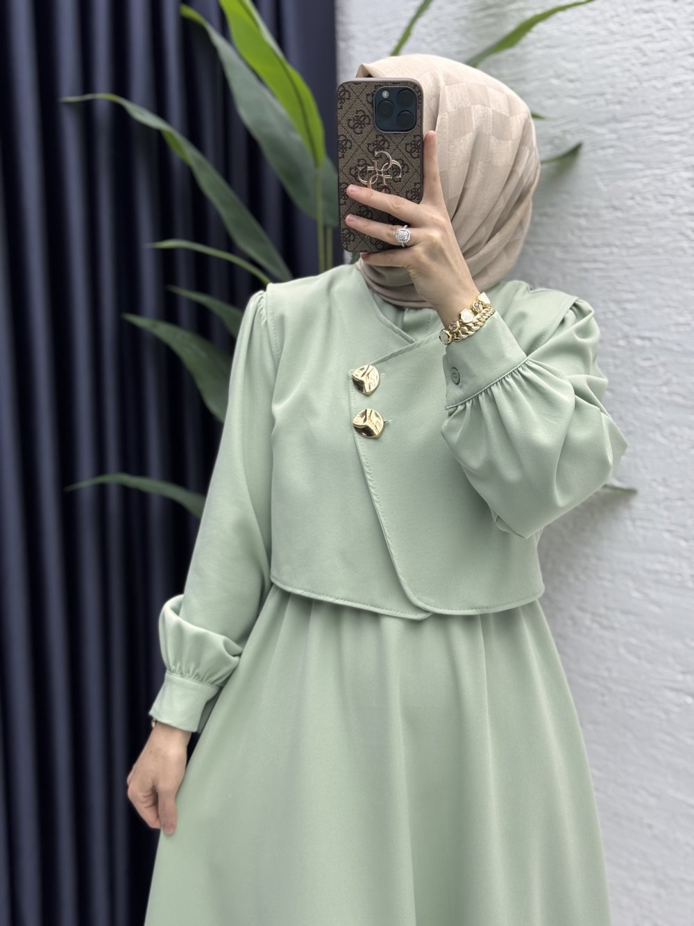 Leyza Elbise Tesettür Giyim Çağla Yeşil
