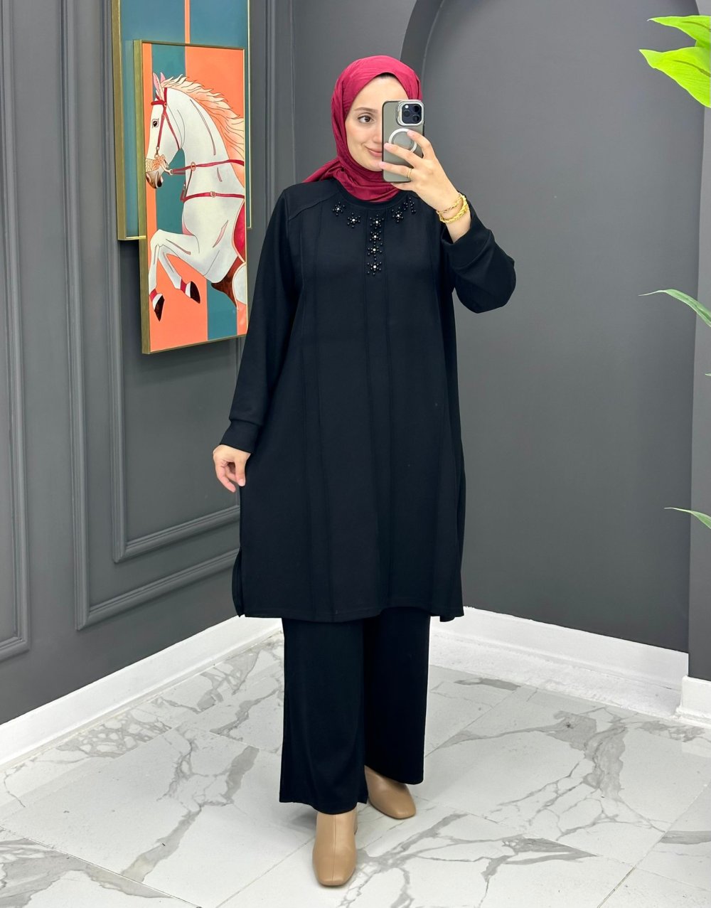 Liva Taşlı Takım - Siyah