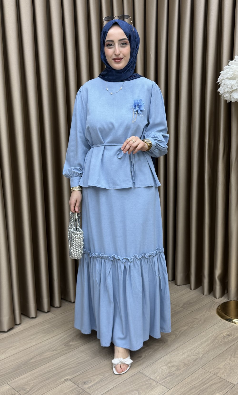 Rahatlık ve şıklığı bir araya getiren Manolya Etek Takım,sade ama zarif duruşuyla günlük kombinlerinizi güçlendiriyor. Yumuşak kumaşı sayesinde gün boyu konfor sunarken, modern kesimiyle stil sahibi bir görünüm yaratır.