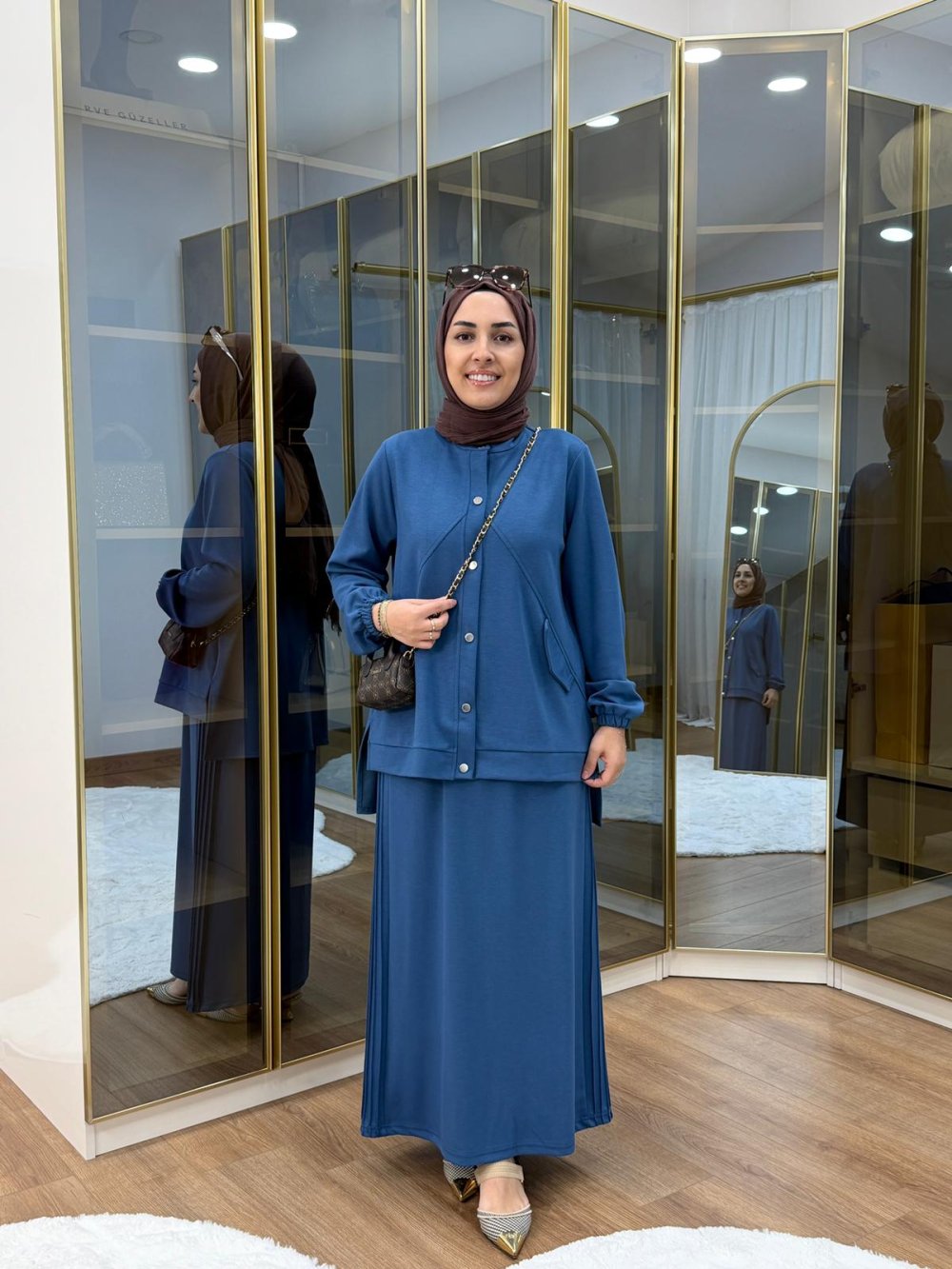 Tunik ön boy 70 cm, arka boy 80 cm’dir.