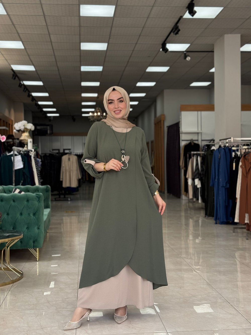 Space Krep Kumaştır. İçlik Sıfır Kol, Dışı Kurtarıcı Pelerin Detaylı, Kollar Apoletli, Kolye Aksesuarlıdır.