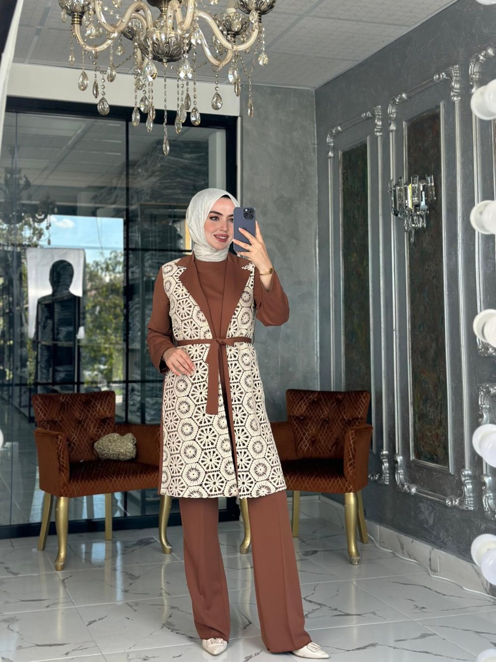 Melis Dantel Takım-Kahverengi