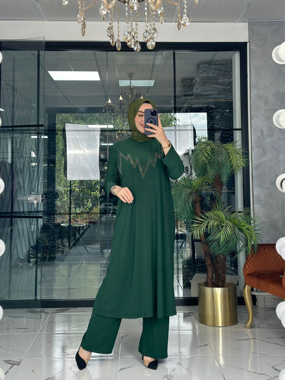 Tilda kumaştır. Pantolon beli lastiklidir. Cep yoktur.