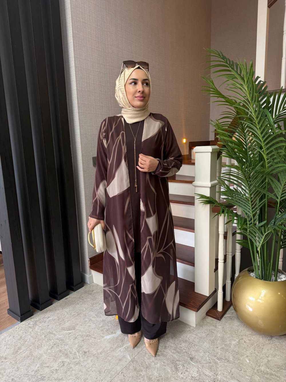 Dış kap dijital baskılı şifon kumaştır, 125 cm’dir.