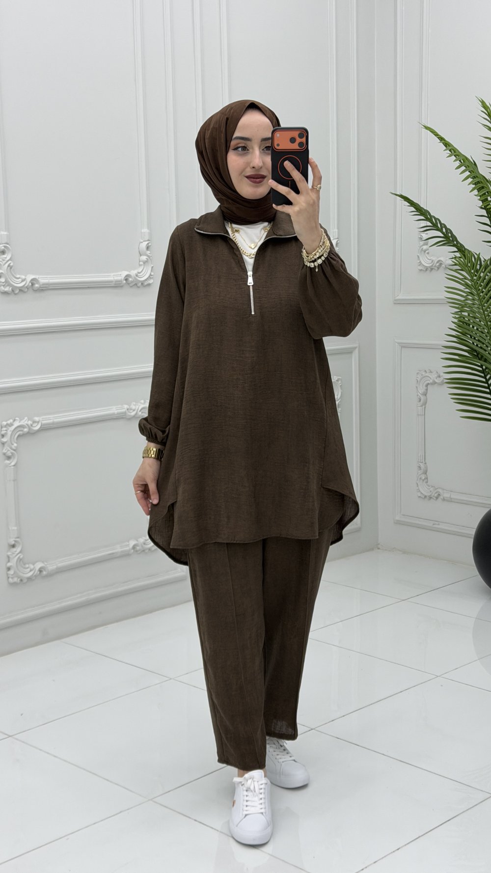 Rahatlık ve şıklığı bir araya getiren Nisa Takım , sade ama zarif duruşuyla günlük kombinlerinizi güçlendiriyor. Yumuşak kumaşı ve esnek yapısı sayesinde gün boyu konfor sunarken, modern kesimiyle stil sahibi bir görünüm yaratır. rengin sofistike etkisi, her ortamda şıklığı yakalamanızı sağlar.