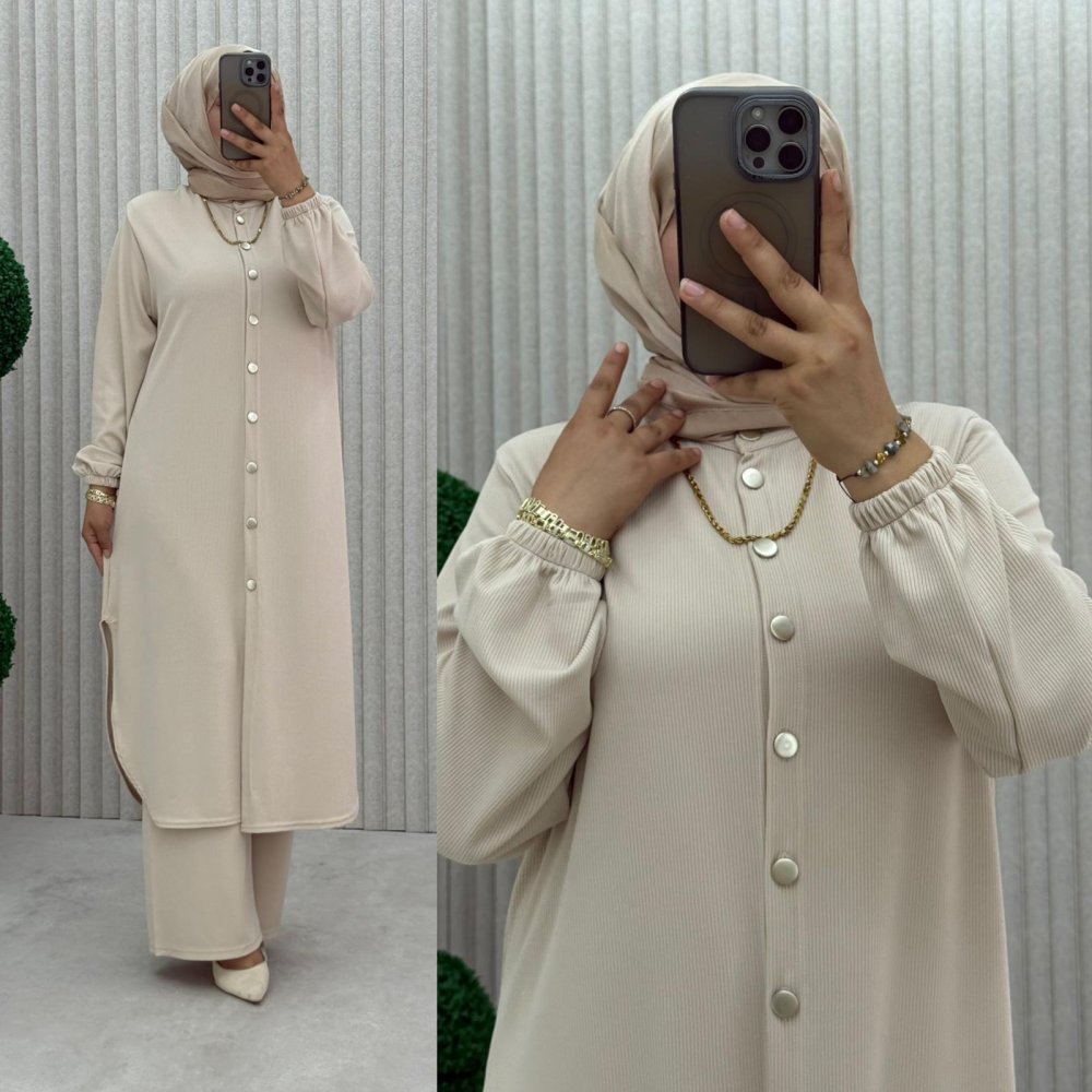 Örme kumaş boydan düğmeli kollar lastikli