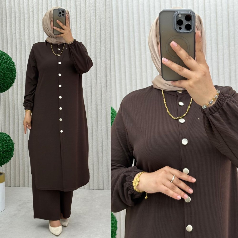 Örme kumaş boydan düğmeli kollar lastikli