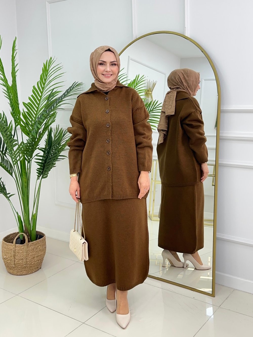 ÖYKÜ ETEKLİ TAKIM - KAHVERENGİ