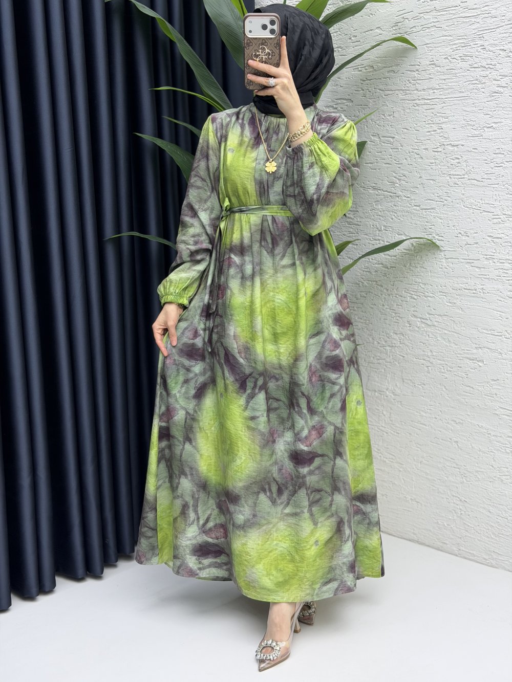 Pare Elbise Tesettür Giyim Yeşil