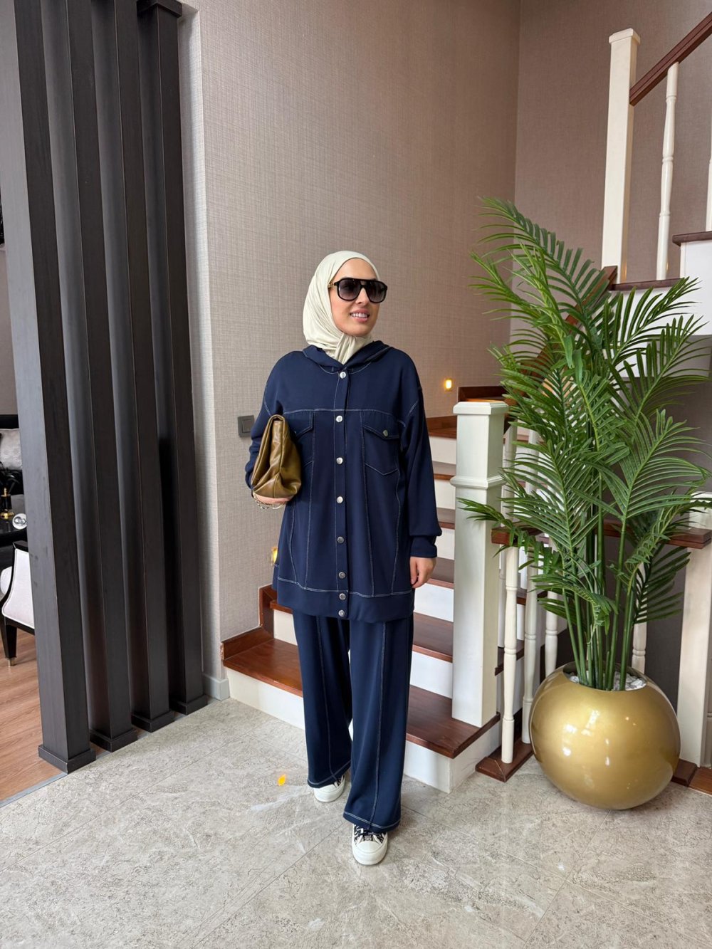 Tunik boy 80 cm’dir. Önden çıtçıt detaylıdır. Kapüşonludur.
