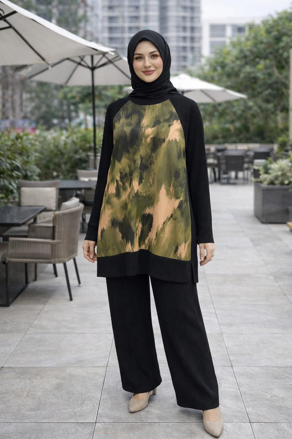 Pliseli Efsun Takım- Haki