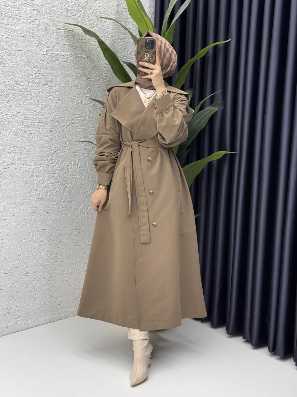 Rabia Trench Tesettür Giyim Koyu Vizon