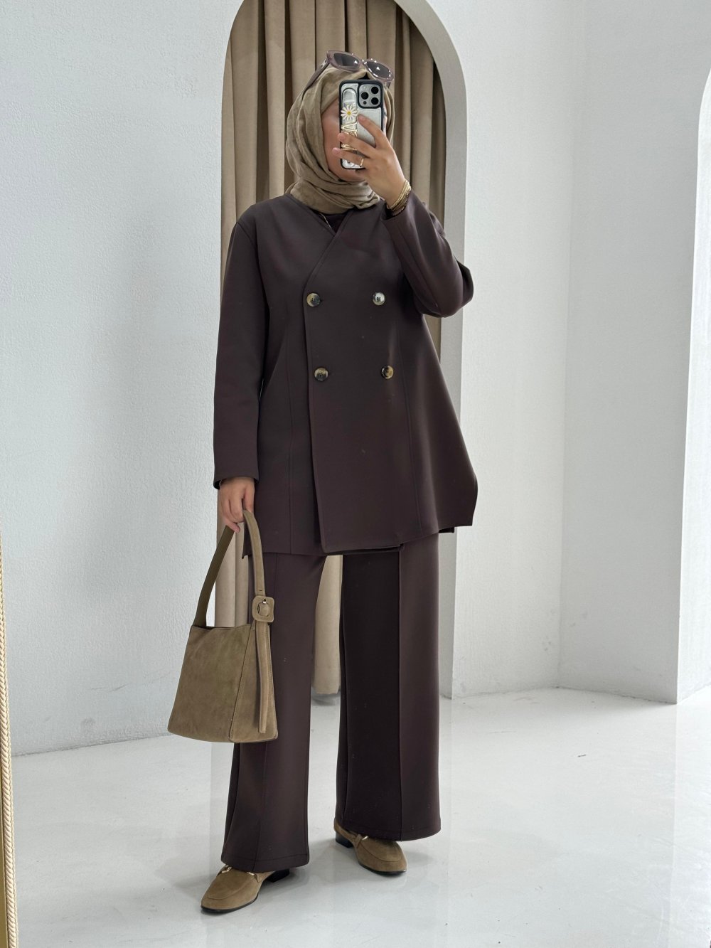 Scuba Ceketli Takım Kahverengi