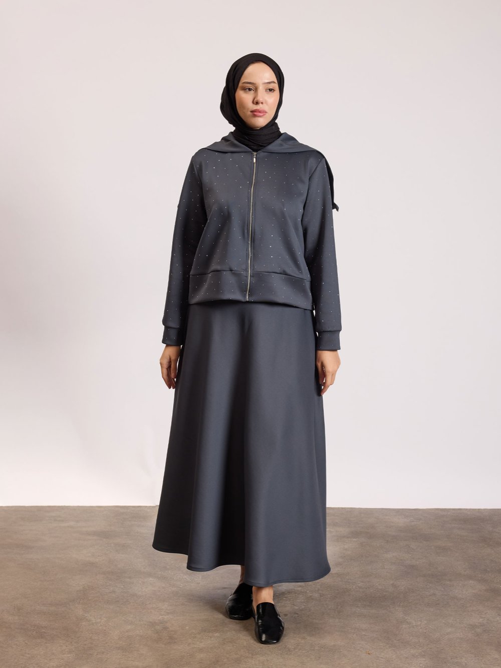 Scuba Taşlı Takım Füme