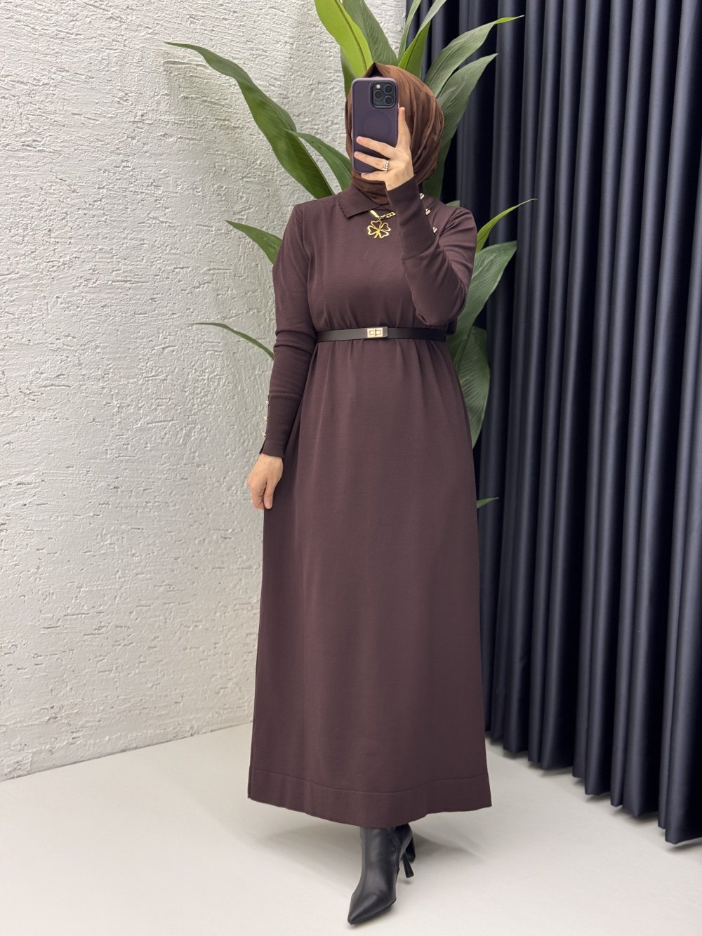 Sermin Elbise Tesettür Giyim Kahverengi