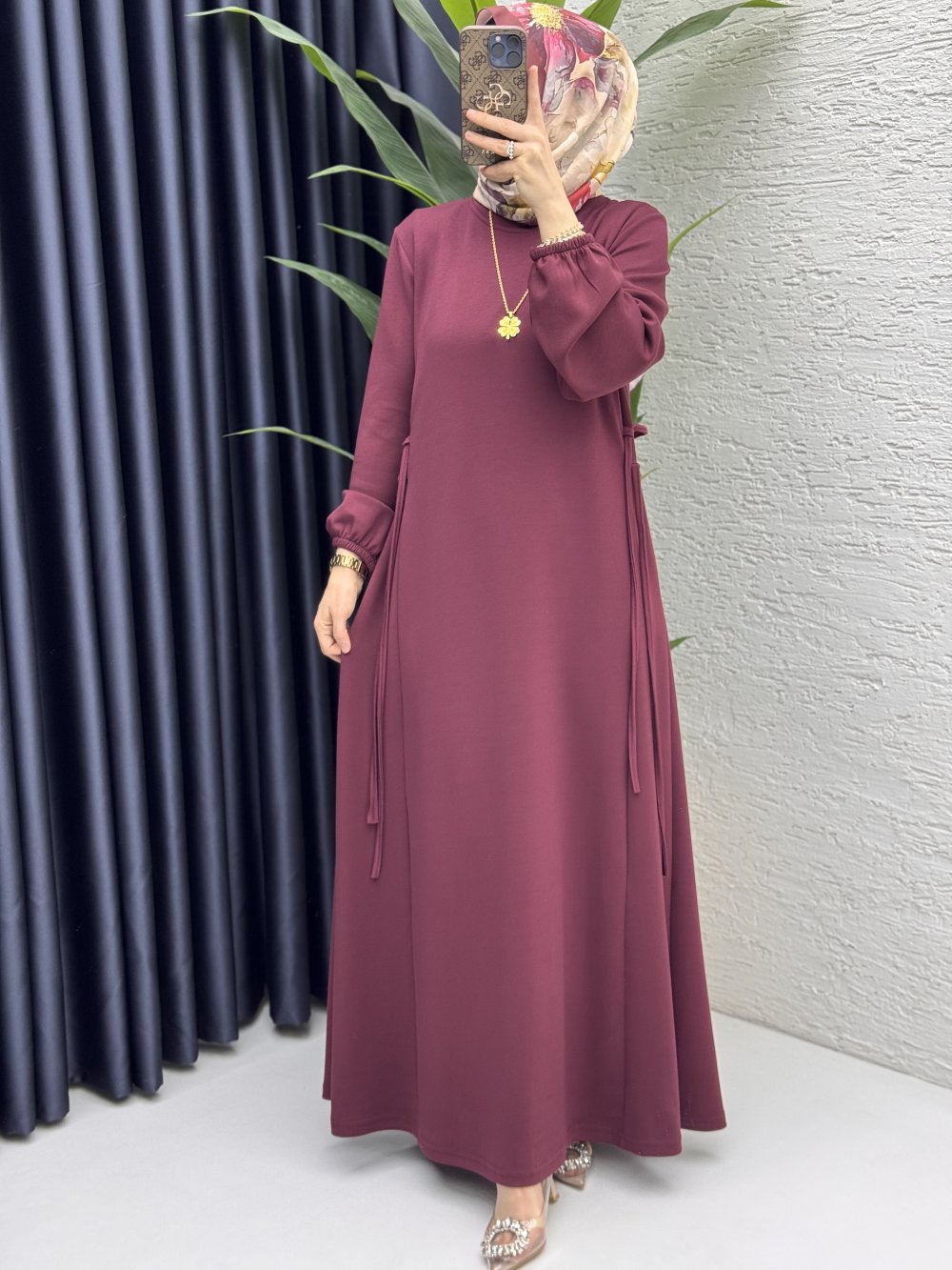 Şeyma Elbise Tesettür Giyim Bordo