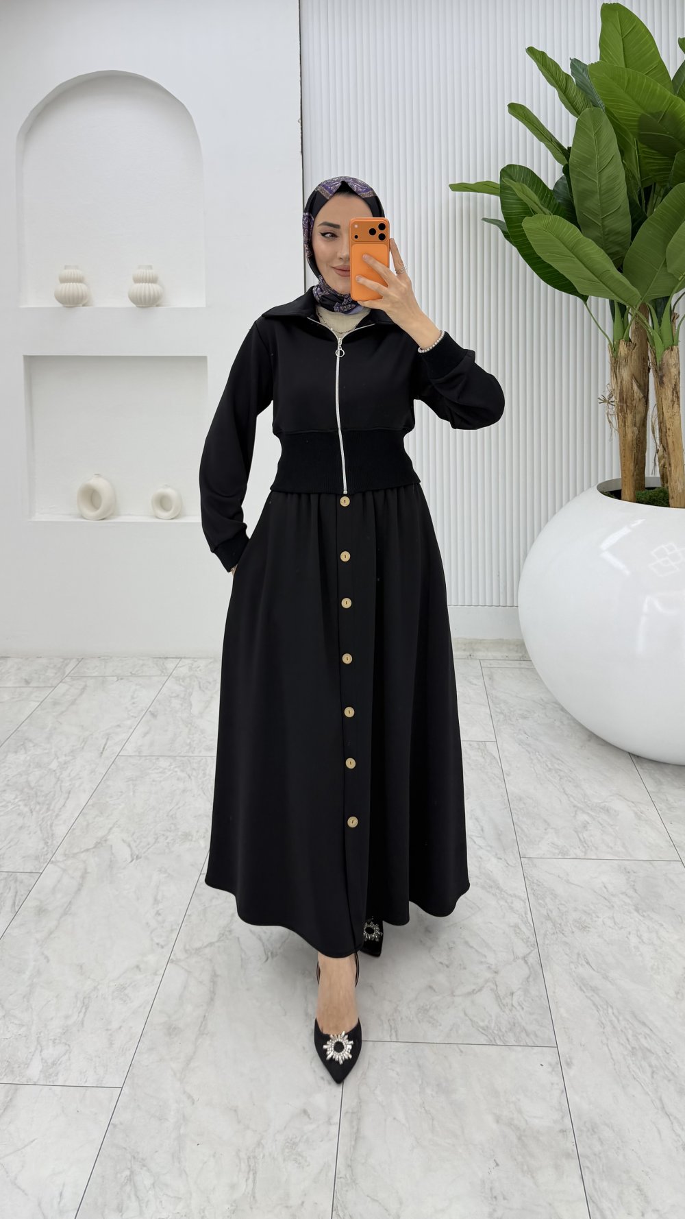 Siyah Şazeli Premium Etek Takım Tesettür Giyim