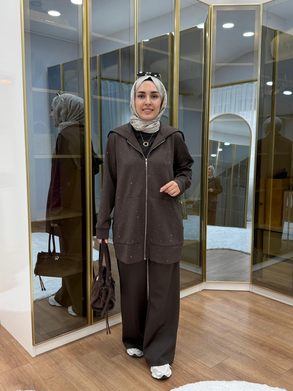 Taşlı Scuba Pantolon Takım Acı Kahve