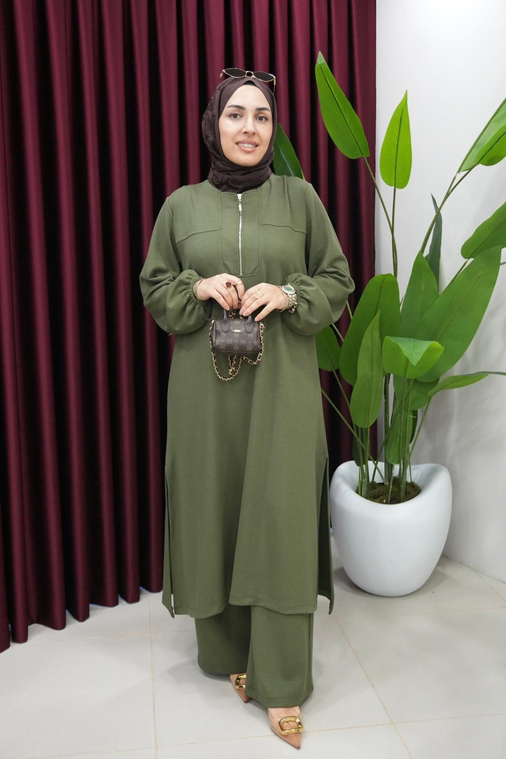 Yandan Yırtmaçlı Fermuar Detaylı Oysho Takım Haki