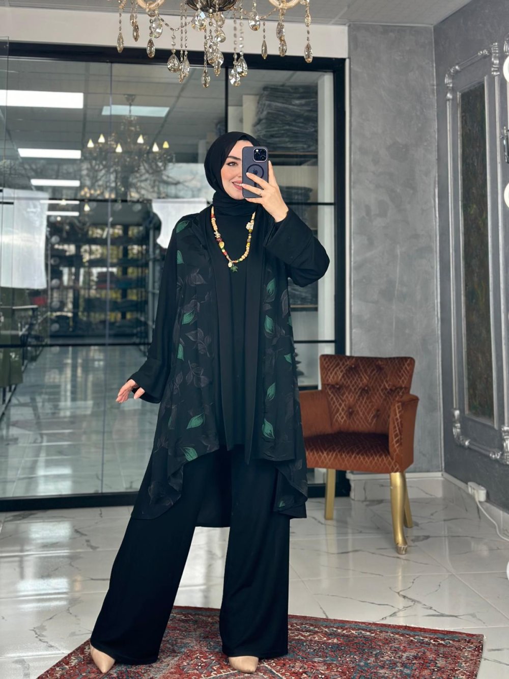 Yaprak Desen Takım Yeşil